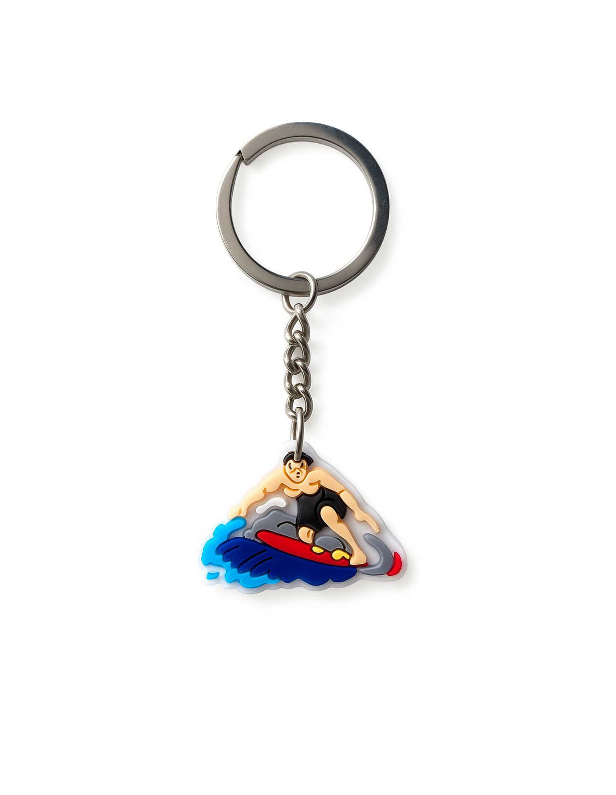 Voel de kracht van de golven met deze stoere surfende man sleutelhanger! Het dynamische ontwerp toont een surfer op zijn rode plank midden in een blauwe golf – een echte blikvanger voor sportievelingen en strandliefhebbers.
